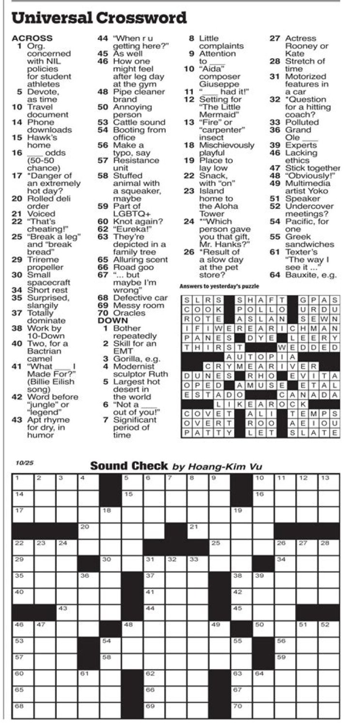Tackle Today's Universal Crossword With Our June 01, 2023 Answers