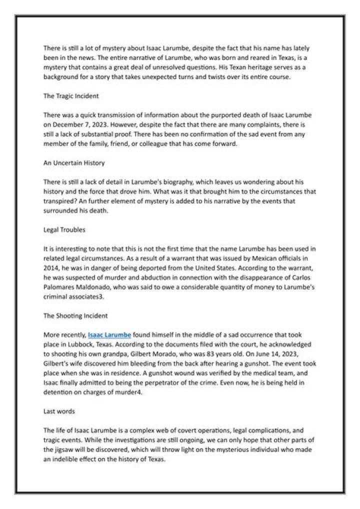 Isaac Larumbe Death Unraveling the Tragic Loss All Perfect Stories